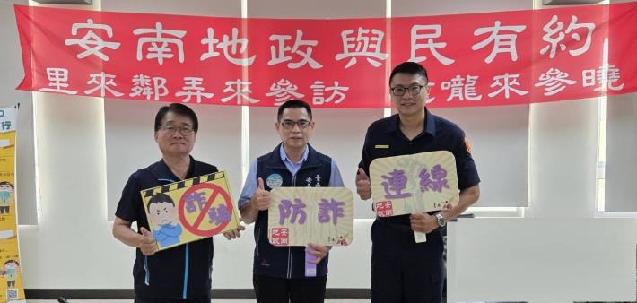 安南地政主任周彥廷表示,近來為積極防範不動產詐騙,本所已與警察機關合作並建立聯繫管道,遇有私人抵押權設定案件會進行關懷提問,讓民眾更深入了解設定內容,避免產生糾紛。本次與安南派出所合作辦理「與民有約」活動,除可即時回應民眾問題外,亦可強化政策宣導效果,了解民眾需求,作為後續業務推動之參考。安南地政將持續配合市府政策與地政局指導,以多元方式持續向民眾宣導地政業務及反詐觀念,提升民眾服務滿意度,落實貼心、便民之地政服務。